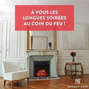 - Effet flamme ultra réaliste (technologie leds Chemin’Arte) qui reproduit l’ambiance d’une veritable cheminée